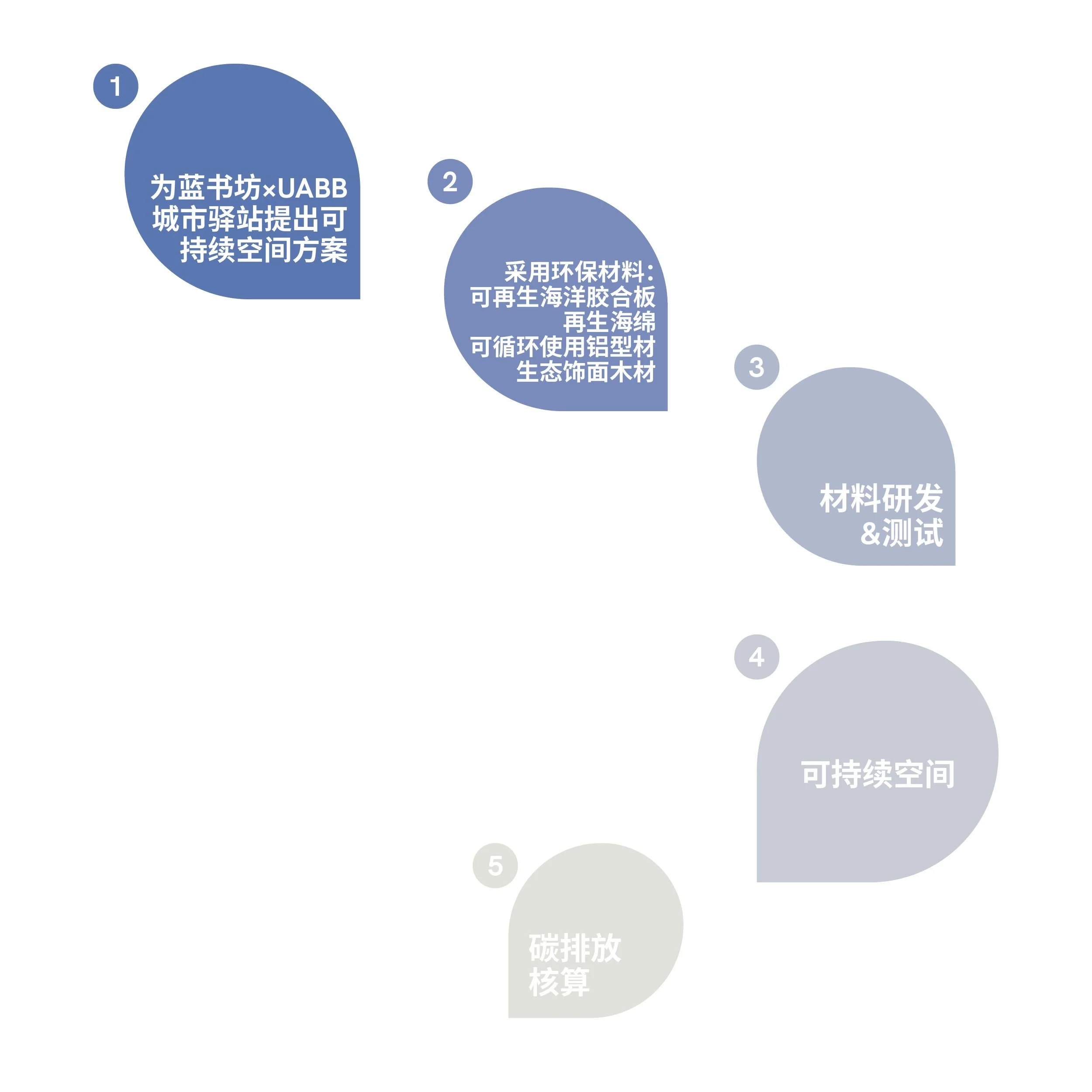 在项目开始之时采用可持续的设计思路,并设定碳排放的 计算边界,以减少项目可能会产生的“隐藏碳”。我们对空间的材料使用总量、废弃物去化量、以及运输环节温室 气体排放量进行了核算,希望在未来通过碳交易的方式抵消碳排放。