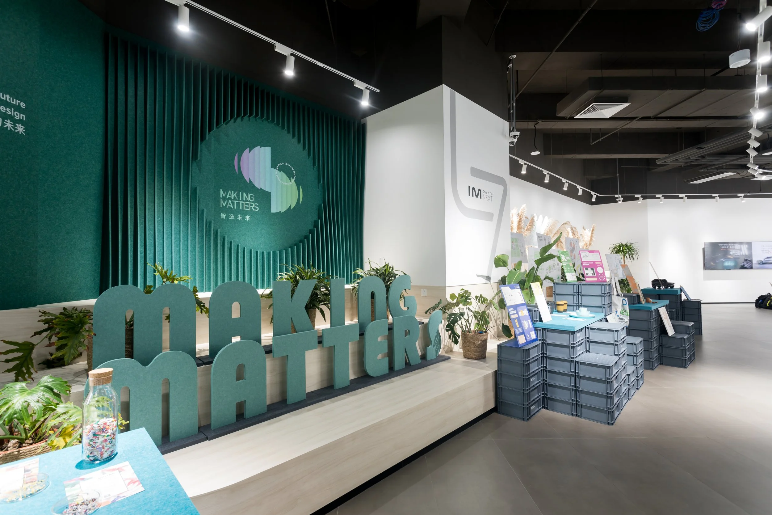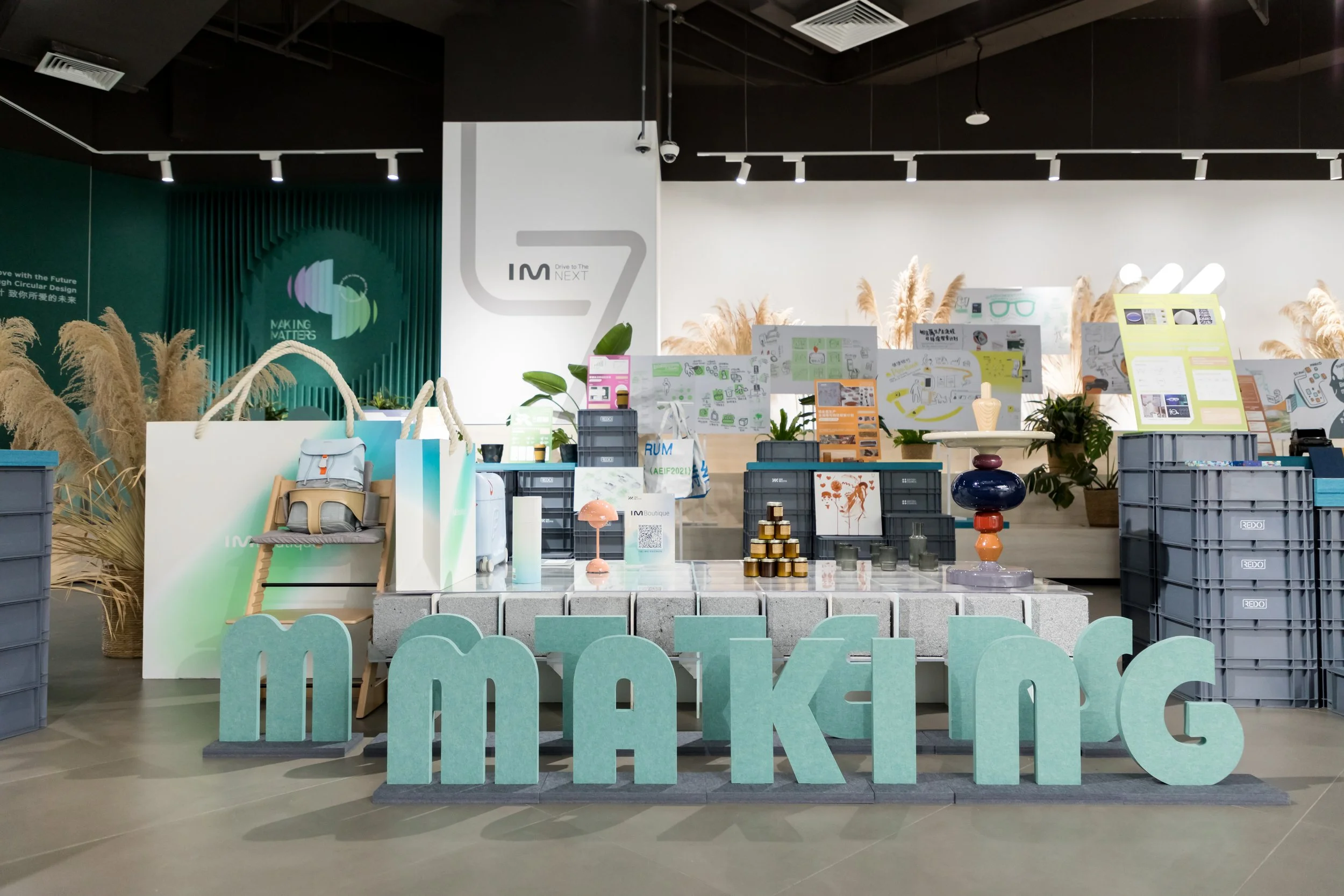 REDO 重塑设计团队提供的再生材料展示与实践板块也一同亮相,此次展览强调通过设计从源头消除废弃物和污染,循环产品和材料,促进自然再生。